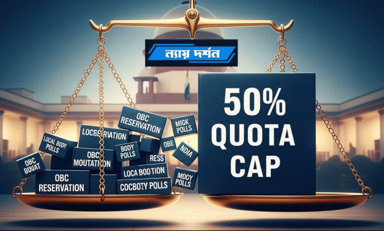 মহারাষ্ট্রের স্থানীয় সংস্থাগুলিতে অন্যান্য অনগ্রসর শ্রেণির (OBC) জন্য সংরক্ষণের বিষয়ে একটি গুরুত্বপূর্ণ রায় দিয়েছে ভারতের সুপ্রিম কোর্ট। শীর্ষ আদালত স্পষ্টভাবে জানিয়ে দিয়েছে যে, মোট সংরক্ষণের ক্ষেত্রে ৫০ শতাংশের যে ঊর্ধ্বসীমা (Cap) নির্ধারিত রয়েছে, তা কোনো পরিস্থিতিতেই লঙ্ঘন করা যাবে না।
